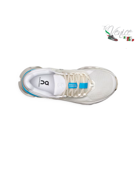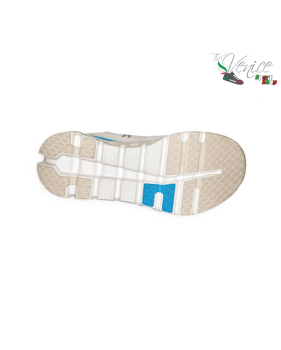 The upper, very breathable and light, is made of entirely recycled Swiss fabric.